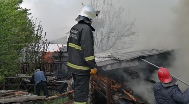 Bolu'nun Dörtdivan ilçesinde çıkan yangında odunluk ve içinde bulunan traktör kullanılamaz hale geldi.