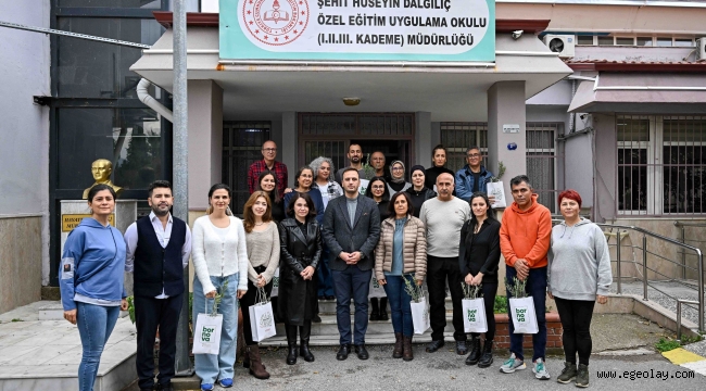 EGEOLAY/Bornova Belediye Başkanı Ömer Eşki, 24 Kasım Öğretmenler Günü dolayısıyla Bornova Şehit Hüseyin Dalgılıç Özel Eğitim Uygulama Okulu’nu ziyaret ederek anlamlı bir etkinliğe imza attı. Başkan Eşki, öğretmenlerin gününü kutlayarak her birine zeytin fidanı armağan etti. Geleceğin teminatı olan çocukları yetiştiren öğretmenlerin kutsal bir görev üstlendiğini belirten Başkan Eşki, “Büyük Atatürk ‘Türkiye Cumhuriyeti sonsuza kadar yaşayacaktır’ demişti. Sizlerin Atatürk sevgisiyle yetiştirdiği çocuklar, aydınlık geleceğini kuruyor. Bu ölmez zeytin ağaçları gibi ölmez bir Cumhuriyet ülküsünü büyütüyor. Sizlere minnetimiz sonsuz” dedi.