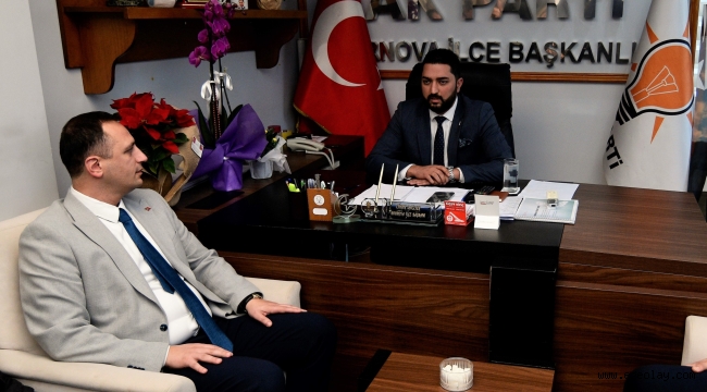 EGEOLAY/Bornova Belediye Başkanı Ömer Eşki, AKP’nin yeni Bornova İlçe Başkanı Cihan Dağlıer’i makamında ziyaret ederek görevinde başarılar diledi. Siyasetin farklı kanatlarından gelen iki isim, Bornova halkının sorunlarını çözme noktasında iş birliği yapma kararlılığını dile getirerek siyasette nezaketin ve diyaloğun önemine dikkat çekti.