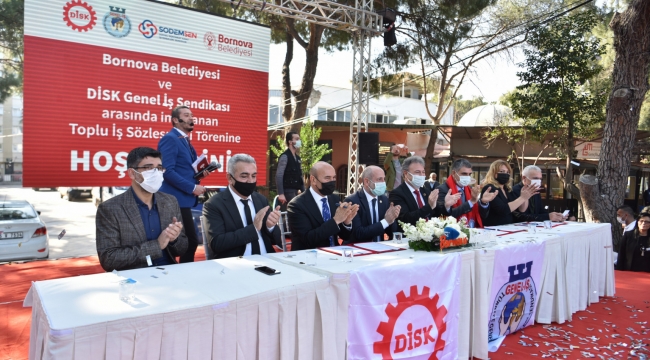 Bornova Belediyesi ve Genel İş Sendikası arasında sürdürülen ve anlaşmayla sonuçlanan görüşmelerin ardından hazırlanan toplu iş sözleşmesi, Bornova Belediye Başkanı Dr. Mustafa İduğ, DİSK Genel İş Başkanı Remzi Çalışkan, Disk Ege Bölge Temsilcisi Memiş Sarı, Disk Genel İş 7 Nolu Şube Başkanı Özgür Genç, İzmir Büyükşehir Belediye Başkanı Tunç Soyer, CHP Genel Başkan Yardımcısı Ali Öztunç, CHP İzmir Milletvekilleri; Prof. Dr. Kamil Okyay Sındır ve Atila Sertel, CHP Parti Meclisi Üyeleri; Rıfat Nalbantoğlu ve Devrim Barış Çelik, CHP Bornova İlçe Başkanı Ertürk Çapın, İyi Parti İlçe Başkanı Mustafa Tabak, çevre il ve ilçelerin yöneticileri ve meclis üyelerinin katıldığı törenle imzalandı. Büyükpark’ta kurulan sahnede halkın huzurunda imzalanan toplu iş sözleşmesi ile Bornova Belediyesi Personel AŞ’de(BORBEL) çalışan 1.534 işçinin en düşük maaşı sosyal hak ve ikramiyelerle birlikte 5.890 TL oldu.