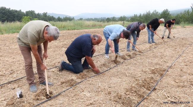 Bornova Kınalı Bamyası’nın coğrafi işaret tescilinin alınmasında ve tohumların korunmasında Bornova Belediyesi ile işbirliği yapan Ege Üniversitesi Ziraat Fakültesi Bahçe Bitkileri Bülümü Sebze Yetiştirme ve Islahı Bilim Dalı Öğretim Üyesi Prof. Dr. Eftal Düzyaman, Tarımsal Hizmetler Müdürlüğü personeliyle birlikte tohumları toprakla buluşturdu.