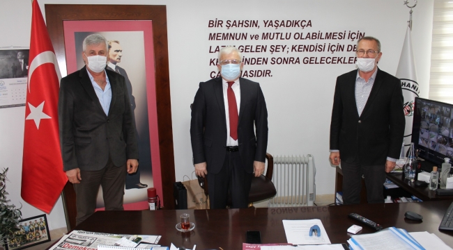 EGEOLAY/Burhaniye Balkan Göçmenleri Kültür ve Dayanışma Dernek Başkanı Süleyman Eruzunlar ve İzmir Bosna Sancak Kültür ve Yardımlaşma Dernek Başkanı Abdullah Gül, Burhaniye Belediye Başkanı Ali Kemal Deveciler’i makamında ziyaret etti.