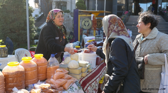 EGEOLAY/Buca Belediyesi tarafından Yerli Malları Haftası’nda hem kadın emeğinin ekonomik hayata kazandırılması hem de ülkemizin tarımsal alandaki zenginliğine dikkat çekmek amacıyla kurulan Üretici Kadınlar Pazarı’na Bucalılar yoğun ilgi gösterdi.