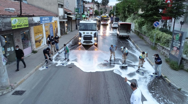 EGEOLAY/Tam kapanma sürecinden kenti baştan aşağı bakıma alan Buca Belediyesi ekipleri, yasağın son günlerinde ana arterlerde dezenfekte çalışması başlattı. Hemşehrilerin sağlığı için ekipler, caddeleri yıkayarak tamamen temizledi.