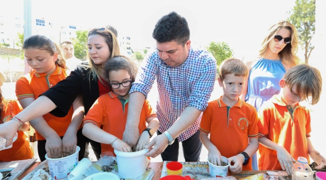 Bucalı çocuklar Başkan Kılıç'la "tohum topu" yaptı