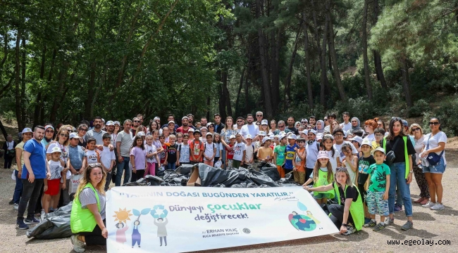 EGEOLAY/Çocuklara çevre bilinci kazandırılması ve tarımsal üretim için her kuşakta farkındalık yaratılması için çalışma yürüten Buca Belediyesi, Dünya Çevre Günü için çok anlamlı bir etkinliğe imza attı. Başkan Erhan Kılıç’la birlikte yaklaşık bir hafta önce “tohum topu” yapan çocuklar, tohumları hep beraber toprakla buluşturdu. Çocuklar aynı zamanda ormanlık alanda çevre temizliği yaptı.