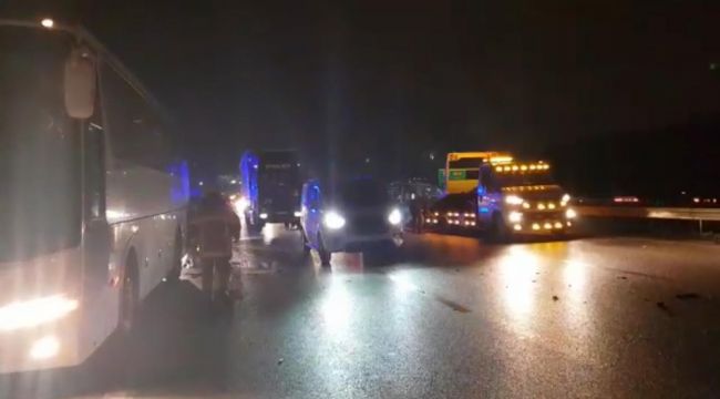 Alınan bilgiye göre, akşam saatlerinde Bursa-İzmir otobanı Hal Kavşağı'nda sağanak yağış sonrası yerlerin kayganlaşmasıyla 7 aracın karıştığı kaza meydana geldi. Kazada 1 ağır 2 kişi yaralandı. Durumu ağır olan yaralı Uludağ Üniversite Tıp Fakültesine Hastanesine kaldırıldı. Kaza sebebiyle kapanan yol, araçların çekici yardımıyla kaldırılması sonucu tekrardan ulaşıma açıldı. Polis ekipleri kazayla ilgili tahkikat başlattı.