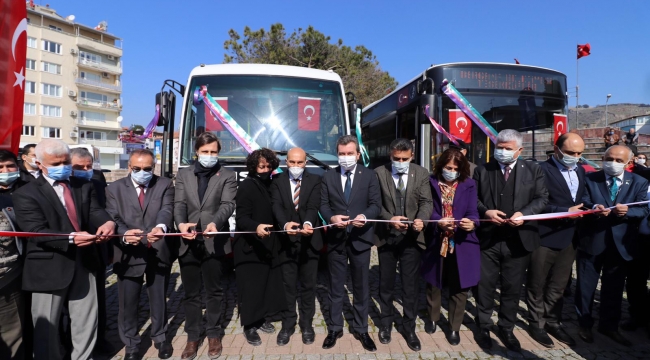 Bergama Cumhuriyet Meydanı'nda düzenlenen törende otobüslerin temsili anahtarı Büyükşehir Belediye Başkanı Tunç Soyer tarafından Bergama Belediye Başkanı Hakan Koştu'ya verildi.