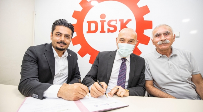 DİSK Ege Bölge Temsilcisi Memiş Sarı, “Bu imzalar sadece ücret anlamında değil. Uzun bir yol arkadaşlığının, bundan sonra sürecek yoldaşlığın, karanlıktan aydınlığa giden iktidar mücadelesinde yan yana olduğumuzun imzasıdır” dedi. Başkan Tunç Soyer'e teşekkür eden DİSK Genel-İş İzmir 2 No’lu Şube Başkanı Arif Yıldız ise, “Toplu sözleşme masasında bizim işverenimizdi ama demokrasi mücadelesinde ağabeyimiz, yoldaşımız, alanda sokakta birlikte mücadele ettiğimiz bir ağabeyimiz” dedi.