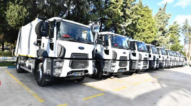 EGEOLAY/İzmir Büyükşehir Belediyesi ilçe belediyelerinin temizlik hizmetlerine modern araçlarla destek olmaya devam ediyor. Büyükşehir Belediyesi son olarak 10,5 milyon liralık maliyetle satın aldığı 15 çöp kamyonunu ilçe belediyelerine hibe etti.