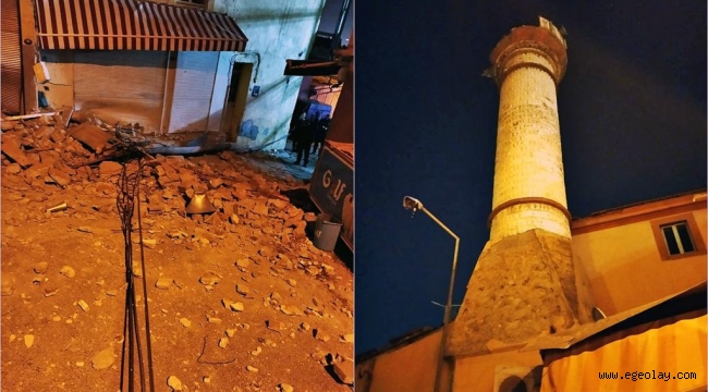 Depremden dolayı minaresi yıkılan Selahattin Oğlu Camiisi'nin çevresine ekipler güvenlik önlemi aldı. Buca'da oturulamayacak durumda olan 4 adresteki yurttaşlar itfaiye ekiplerinin kontrolü eşliğinde tahliye edildi. Karşıyaka ilçesinde depremden dolayı bina dış cephesinden düşen sıva nedeniyle gerekli güvenlik önlemi alındı. Fevzi Paşa Bulvarı üzerindeki tarihi bir yapının duvarından dökülen taşların tehlikeye neden olmaması için binanın etrafına güvenlik şeridi çekildi. Fen İşleri Dairesi Başkanlığı da gerekli çalışma yapmak üzere Fevzi Paşa Bulvarı'na yönlendirildi.