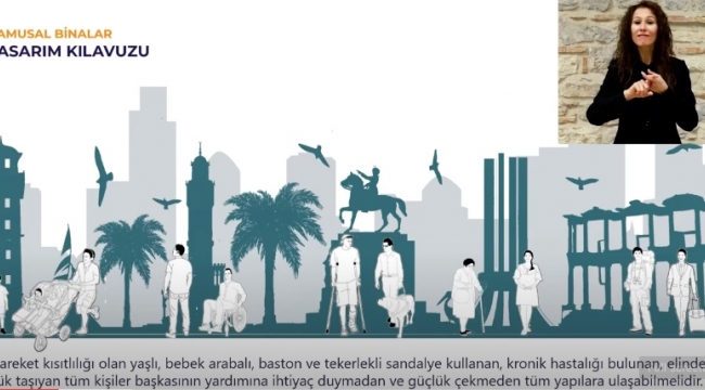 “Erişilebilir Tasarımlar ve Ürünler” kategorisi için yapılan videoda kamusal binalar için tasarım kılavuzu anlatıldı. Etüd ve Projeler Dairesi tarafından hazırlanan kılavuzun, Büyükşehir ve tüm ilçe belediyelerdeki teknik personelle paylaşılması ve böylelikle mevcut binalarda ve yeni yapılacak olanlarda bu kılavuzdaki erişilebilirlik ilkelerinin esas alınması planlanıyor.