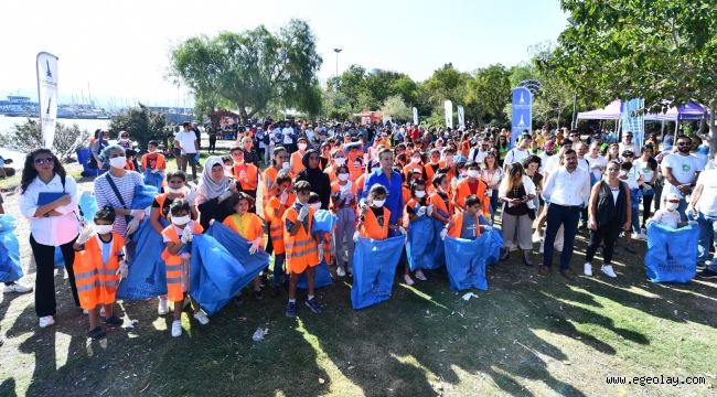 EGEOLAY/Çevre bilinciyle ilgili farkındalık yaratmak için Ağustos ayında 30 ilçede eşzamanlı temizlik hareketi başlatan İzmir Büyükşehir Belediyesi, Dünya Temizlik Günü'nde İnciraltı Kent Ormanı'nda temizlik çalışması yaptı. Gönüllülerin de katılımıyla bir buçuk saat içinde 500 kilogram çöp toplandı.