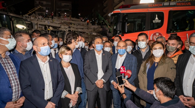 İzmir Büyükşehir Belediye Başkanı Tunç Soyer ise yıkımın en çok Bayraklı’da olduğunu söyleyerek, “Enkaz halinde 19 binamız var. Şu ana kadar 12 vatandaşımız vefat etti. 500 civarında yaralımız var. Vefat sayısının artmasından endişe ediyoruz ama ekiplerimiz, AFAD ekipleri, İzmir Büyükşehir Belediyesi ekipleri ve dışardan gelen çok sayıda destek ekibimiz çalışmalarını sürdürüyor. Görev başındaki tüm arkadaşlara çok teşekkür ediyoruz. Yaralılarımıza acil şifalar diliyoruz. Kaybettiklerimizin yakınlarına baş sağlığı diliyoruz” dedi.
