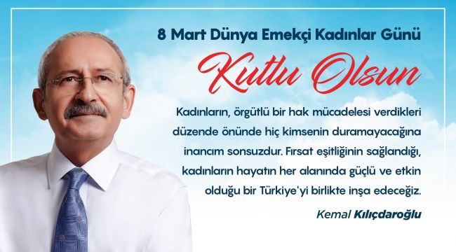 CHP Genel Başkanı Kemal Kılıçdaroğlu'ndan 8 Mart Dünya Kadınlar Günü Mesajı