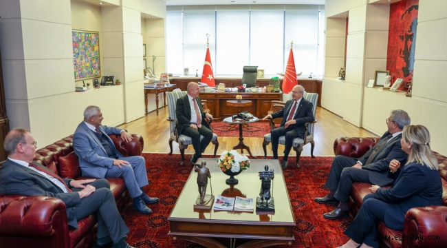 Cumhuriyet Halk Partisi Genel Başkanı Kemal Kılıçdaroğlu, Zafer Partisi Genel Başkanı Ümit Özdağ ve beraberindeki heyet ile CHP Genel Merkezi’ndeki makamında bir araya geldi. CHP lideri Kılıçdaroğlu’na CHP Genel Sekreteri Neslihan Hancıoğlu ile Genel Başkan Yardımcısı ve Parti Sözcüsü Faik Öztrak eşlik etti.