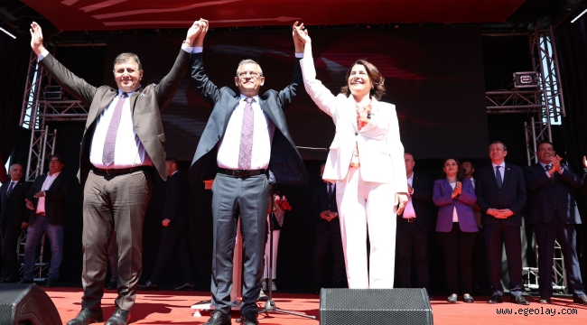 CHP Genel Başkanı Özgür Özel, İzmir programına Foça'dan başladı. Foça Nihat Dirim Barış ve Demokrasi Meydanı'ndaki buluşmaya CHP İzmir Büyükşehir Belediye Başkan Adayı Dr. Cemil Tugay'ın yanı sıra CHP Genel Başkan Yardımcısı ve İzmir Milletvekili Murat Bakan, CHP Genel Başkan Yardımcısı Yankı Bağcıoğlu, CHP İzmir milletvekilleri Mahir Polat, Sevda Erdan Kılıç, Rıfat Nalbantoğlu, Rahmi Aşkın Türeli, Ednan Arslan, CHP İzmir İl Başkanı Şenol Aslanoğlu da katıldı. Konuşmasını yapmak için sahneye çıkan CHP Genel Başkanı Özgür Özel, CHP'nin eski Foça Belediye Başkanı Gökhan Demirağ, Foça Belediye Başkanı Fatih Gürbüz ile CHP'nin Foça Belediye Başkan Adayı Saniye Bora Fıçı da sahneye davet etti. Özel, Gürbüz ve Demirağ’ın, Fıçı’ya destek vermesinden dolayı mutlu olduğunu dile getirerek, “Ne yaparsanız yapın göreve nasıl geldiğiniz değil, nasıl gideceğiniz önemlidir. Bugün Saniye hanımı destekliyoruz ama partililiğini görevi bıraktığında göreceğiz. İki yanında önceki iki belediye başkanımız var. CHP’lilik neymiş herkes görsün” dedi.
