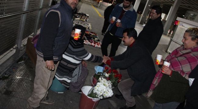 EGEOLAY/Cumhuriyet Halk Partisi Konak İlçe Başkanlığı yeni yılın ilk saatlerini sokakta çalışan emekçilerle birlikte karşıladı.