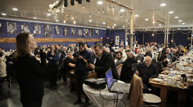 Başkan Adayı Mutlu, günün ilk mesaisinde Anadolu Birliği Derneği’nin “Yerel Yönetimlerde Sivil Toplum Kuruluşlarının Yeri ve Önemi” konulu toplantısına katıldı. Derneğin Genel Başkanı Erhan Kahraman, Onursal Başkan Koçali Al ve Hüseyin Cemiloğlu, Genel Sekreter Birgül Karagöz, birlik üyeleri ile muhtarlar tarafından ilgiyle karşılanan Mutlu’ya, CHP Konak İlçe Başkanı Ozan Ali İlgazi de eşlik etti. Buluşmaya katılan birlik üyeleri kendileriyle tek tek selamlaşan Mutlu’ya seçim sürecinde başarı dileklerinde bulundu. Etkinlikte yaptığı konuşmasında birlik üyelerine seslenen Mutlu, “Bugün kendi evimdeyim, burası benim için bir dost sofrası. Bizler bu yolu birlikte yürüyeceğiz. Beş yıl boyunca siz değerli sivil toplum kuruluşlarıyla yan yana yürümek için yola çıktım. Konak’ta hep birlikte çalışacağız, ben de sivil toplum kuruluşlarından geliyorum. Ortak akla çok inanıyorum. İzmir’e her açıdan katkıda bulunan Anadolu Birliği Derneği bizim için çok kıymetli. Türkiye’nin her yerinden yolumuzun İzmir’de kesiştiği komşularım, sesimizi birlikte daha da artırmak için sizlerin desteğini alarak önümüzdeki beş yıl boyunca hep birlikte olalım istiyorum. Ben klasik siyasetçilere benzemiyorum, her zaman yanınızda olacağım. İzmir’i ve Konak’ı hep birlikte yücelteceğiz. Hepinize bu sıcak ev sahipliği için çok teşekkür ediyorum” dedi.