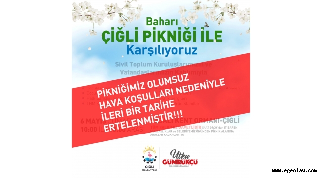 Çiğli Belediyesi'nden Bahara Merhaba Pikniği İleri Bir Tarihe Ertelendi