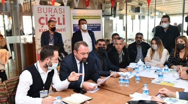 7 Aralık Salı günü Çiğli Belediyesi Meclis Salonu'nda düzenlenen iki oturumlu Dirençli Kentler Sempozyumu'nun açılış konuşmalarını zoom platformu üzerinden CHP Genel Başkan Yardımcısı Ahmet Akın ile Çiğli Belediye Başkanı Utku Gümrükçü yaptı. Oturumların öncesinde söz alan Dr. Ebru Alarslan, "Sürdürülebilir Kentler ve Toplumlar 2030 Hedefine Doğru Yaklaşırken Dirençli Kentler Tasarlamak" üzerine çerçeve bildiri sunumu gerçekleştirdi. Sempozyumun ilk oturumu Dr. Mehmet Pembecioğlu'nun "Çiğli Mekansal Strateji Planı Çiğli’nin Geleceğini Nasıl Öngörüyor?” sunumu ile başladı. Pembecioğlu’nun ardından İzmir Katip Çelebi Üniversitesi Orman Fakültesi Orman Mühendisliği Bölüm Başkanı Prof. Dr. Derya Eşen "Dirençli Kentlere Yönelik Kent Ormancılığı", Sürdürülebilir Kentsel Gelişim Ağından Prof. Dr. Canan Madran ise “Dirençli Kentler Perspektifinde Sürdürülebilir Kalkınma Amaçlarının Yerelleştirilmesi” konularında sunum yaptı.