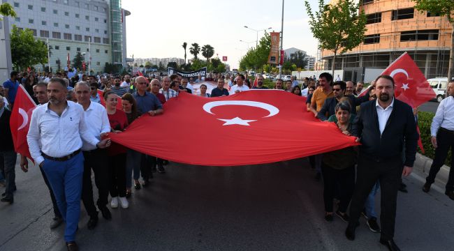 Çiğli Belediyesinin beş güne yaydığı “İlk Kurşundan İlk Adıma 100. Yıl” etkinlikleri fener alayı yürüyüşü ile taçlandı. Büyük katılım ve coşkuyla yapılan fener alayı yürüyüşü Mustafa Kemal Atatürk’ün Samsun’a ayak bastığı 1919 yılına gönderme yaparak saat 19.19’da Ataşehir Mahallesi Akvaryum Kafe önünden başladı. Çiğli Belediye Başkanı Utku Gümrükçü, sivil toplum örgütlerinin temsilcileri, belediye bürokratları, muhtarlar, meclis üyeleri, CHP ve İYİ Parti yöneticileri ve yüzlerce Çiğlili kol kola girerek bando eşliğinde İsmail Rahmi Karadavut İlkokulu önündeki konser alanına yürüdüler. Çiğlili vatandaşlar Türk Bayrağı ve Mustafa Kemal Atatürk posterlerini büyük özenle taşıdılar. Türk Bayraklarının ellerde taşındığı yürüyüş boyunca “Mustafa Kemal’in askerleriyiz” ve “Türkiye laiktir laik kalacak” sloganları atıldı. Gençlerin meşaleler ile eşlik ettiği fener alayı yürüyüşünün coşkusuna evlerinin balkonlarına çıkan vatandaşlar da alkışlarıyla ortak oldu.