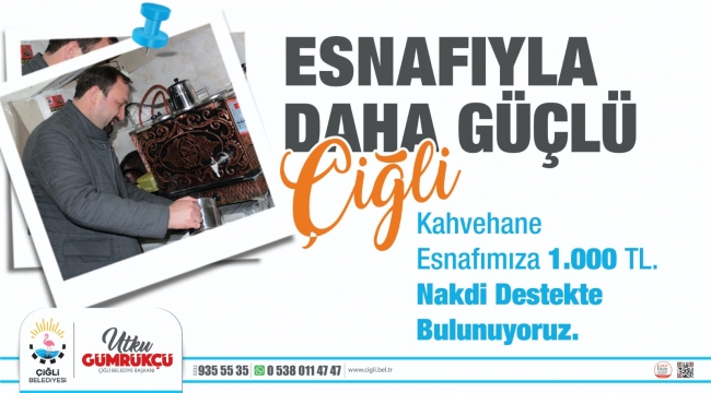Covid-19 salgınından ve salgına bağlı olarak oluşan ekonomik krizden etkilenen esnaflara ve emekçilere destek olmak amacıyla çalışmalarını sürdüren Çiğli Belediyesi, son olarak uzun süredir kepenk indirmiş olan kahvehane, kıraathane, internet kafe ve Play Station salonu esnaflarına bin TL nakdi destek yardımında bulundu. Çiğli Esnaf ve Sanatkarlar Odası ile tespit edilen ihtiyaç sahibi esnafların hesaplarına ödemeler çok kısa sürede gerçekleştirildi.