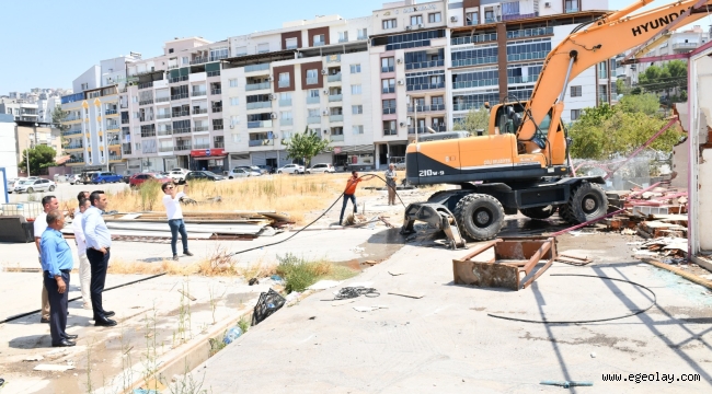 Küçük Çiğli Mahallesi 8714/3 sokakta bulunan eski pazar yerine kaçak olarak inşa edilen idari bina, kafeterya ve oturma alanlarının bulunduğu metruk yapılara yönelik Fen İşleri Müdürlüğü ekiplerince yıkım çalışması başlatıldı. Kentin ihtiyaçlarına yönelik kentsel düzenlemelerin yapılacağını belirten Başkan Yıldız, yıkım çalışmalarını ekiplerle birlikte yerinde takip etti.
