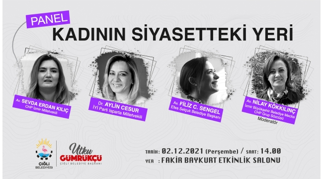 EGEOLAY/Çiğli Belediyesi, 5 Aralık Kadınlara Milletvekili Seçme ve Seçilme Hakkı verilişinin 87. yıl dönümünde "Kadının Siyasetteki Yeri" konulu panele ev sahipliği yapacak.