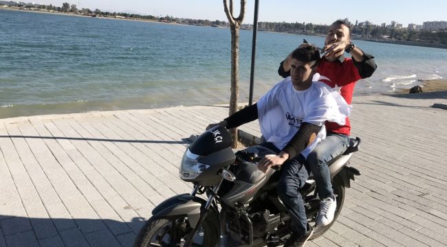 "Çılgın berberden" hareket halindeki motosiklette tıraş