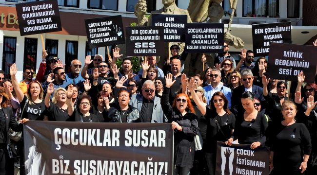 Çocuk istismarına karşı çıkan pankartlarla ve "Çocuk istismarı toplumun yüz karasıdır", "Çocuk susar, sen susma, istismara sessiz kalma", "Ben çocuğum, yaşama hakkımı elimden alma", "Ses ol, istismara sessiz kalma", "Bir çocuğun çıkaramadığı ses olmak zorundasın", "Çocuklarımızın düşlerini karanlığa teslim etmeyeceğiz", " Çocuk istismarı insanlık suçudur", "Bir çocuğun çıkaramadığı ses olmalıyız" ve "Ben kirlenirsem dünya kirlenir" sloganları ile Çeşme çarşısında yürüyen gruba, esnaf ve vatandaşlar da alkışlarla destek vererek, istismara sessiz kalmadılar.