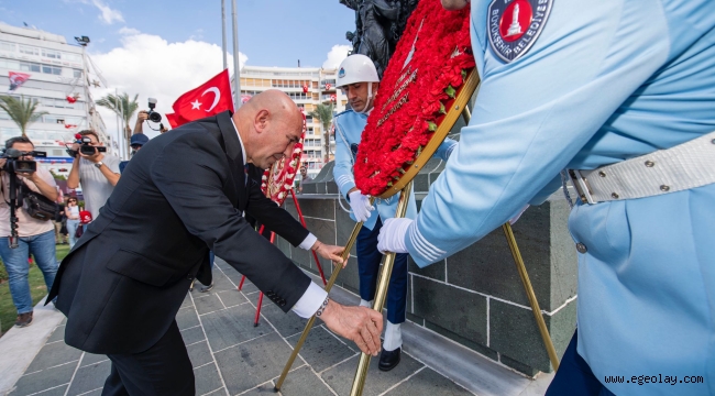 Cumhuriyetin kuruluşunun 100. yıl dönümü nedeniyle Cumhuriyet Meydanı’nda tören düzenlendi. Törene İzmir Valisi Süleyman Elban, İzmir Büyükşehir Belediye Başkanı Tunç Soyer, Ege Ordusu ve Garnizon Komutanı Orgeneral Kemal Yeni, siyasi partilerin milletvekilleri ile il başkanları katıldı. Tören, Atatürk Anıtı’na çelenk konulmasının ardından saygı duruşu ve İstiklal Marşı’nın okunmasıyla son buldu.