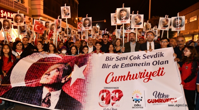 EGEOLAY/Çiğli Belediyesi, Cumhuriyetin 99. kuruluş yıl dönümünü düzenlediği konser, meşaleli yürüyüş, tiyatro gösterimi ve çeşitli sportif etkinlikler ile kutlandı. Binlerce yurttaşın katılım gösterdiği etkinlikler şölen havasında geçti.