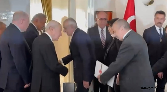 EGEOLAY/MHP Genel Başkanı Devlet Bahçeli ile DEM Parti heyetinin görüşmesi başladı. Bahçeli, DEM Parti heyetini kapıda karşıladı.