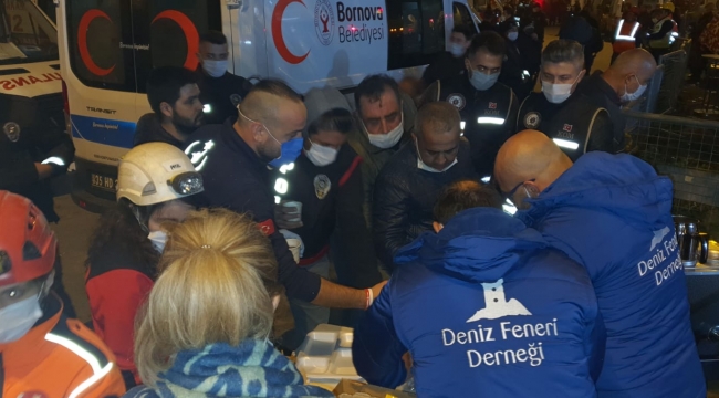 Açıklamada görüşlerine yer verilen Deniz Feneri Derneği Genel Başkanı Mehmet Cengiz, "İzmir’de bulunan Ege Bölge Temsilciliği’mizin lojistik depolarından ilk etapta battaniye, kuru gıda, çocuk kışlık montları, su, kek, hijyen malzemeleri depremzedelere dağıtmak için depremin vurduğu ilçelere doğru yola çıkardık. Ayrıca Sancaktepe Belediyesi’nden temin edilen mobil ikram aracıyla da sıcak çorba dağıtılmaya başlandı." ifadelerini kullandı.