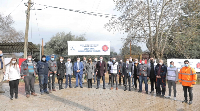 EGEOLAY/Dokuz Eylül Üniversitesi Veteriner Fakültesi bünyesinde Kiraz İlçesinde kurulan ve bölgenin ilk kanatlı hayvan çiftliği olma özelliğini taşıyan Gezen Tavuk Yumurta Üretim Tesisleri çalışmalarını yerinde inceleyen DEÜ Rektörü Prof. Dr. Nükhet Hotar, “Bu tesis sadece üretim amaçlı değil, fakültemiz öğrencilerinin uygulama eğitimlerinde de kullanılacak. Ayrıca bu tesis öğretim üyelerimizin TÜBİTAK ve benzeri kaynaklardan desteklenen projelerinde de bir laboratuvar vazifesi görecek” dedi.