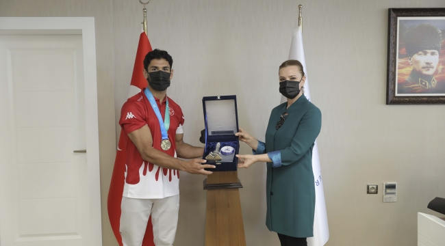 Dokuz Eylül Üniversitesi (DEÜ) Spor Bilimleri Fakültesi Beden Eğitim Öğretmenliği 4. Sınıf öğrencisi Yunus Emre Batan, bu başarı üzerine DEÜ Rektörü Prof. Dr. Nükhet Hotar’ı ziyaret etti. Türkiye’yi temsil eden milli sporcunun başarısının 3 yıl sonra da olsa tescillenmesinden duydukları memnuniyeti ifade eden Rektör Hotar, “Ülkemizin her alanda dünyada başarıyla temsil edilmesi bizleri gururlandırıyor. Bu başarının öğrencilerimiz tarafından elde edilmesi ise bizleri ayrıca mutlu ediyor. Rektörlük olarak spora ve sporcularımıza her zaman destek veriyoruz. Bu kapsamda; Necat Hepkon Spor Bilimleri Fakültemizde ve Fevziye Hepkon Spor Bilimleri ve Sporcu Sağlığı Uygulama ve Araştırma Merkezimizde yaptığımız akademik çalışmalar ile sporcularımıza ihtiyaç duyulan akademik desteği veriyoruz” dedi.
