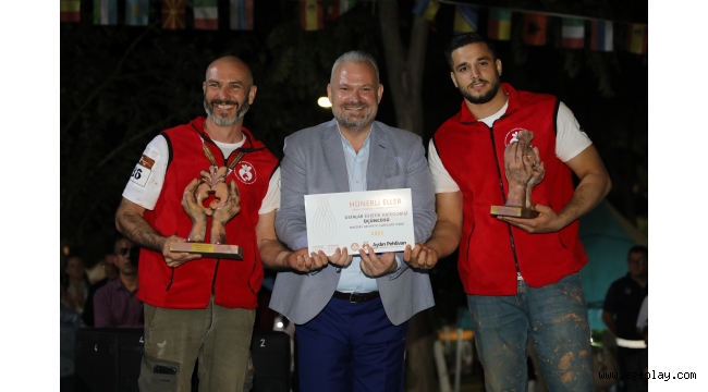 EGEOLAY/Menemen Belediyesi’nin ilkini düzenlediği Uluslararası Menemen Çömlek Festivali, Şehir Parkı’nda düzenlenen ödül töreniyle muhteşem bir finale imza attı. Dünyanın ve Türkiye’nin çömlek ustalarının görkemli eserlerinin birbirleriyle yarıştığı final gecesinde dereceye girenlere ödüllerini Menemen Belediye Başkan Vekili Aydın Pehlivan verdi. Pehlivan, “Hünerli Eller Menemen Çömlek Yarışması’nda elbette ödül alanlar oldu ama bence kazanan çömlekçilik sektörü ve Menemen oldu. Biz festival yapalım dedik ama kıymetli konuklarımızın ve belediye personelimizin sayesinde muhteşem bir organizasyona ev sahipliği yaptık. Fuar alanlarımızı dolduran halkımızla birlikte yurdumuzun ve dünyanın birçok yerinden gelen sanatçıları ve katılımcıları en güzel şekilde ağırladık. Emeği geçen, katılım sağlayan, bizleri bu görkemli festivalimizde onurlandıran herkese teşekkür ediyorum” dedi.