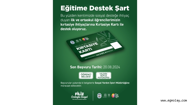 EGEOLAY/Efes Selçuk Belediyesi Sosyal Yardım İşleri Müdürlüğü, sosyal desteğe ihtiyaç duyan ailelerin ilkokul ve ortaokul seviyesinde eğitim gören çocukları için Kırtasiye Kartı desteği veriyor.