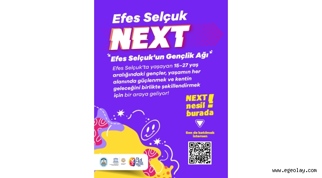 Efes Selçuk’ta yaşayan veya kentte eğitim gören 15-27 yaş aralığındaki gençleri kapsayan Efes Selçuk Next Gençlik Ağı, gençlerin fikirleriyle kent yönetimine katılımını artırmayı ve onların sosyal, kültürel, ekonomik alanlarda güçlenmesini hedefliyor.