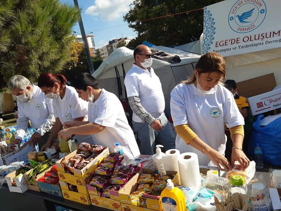 EGEOLAY/İzmir'in Seferihisar ilçesi açıklarında 30 Ekim Cuma günü meydana gelen depremde yıkılan binaların bulunduğu bölgede ilk günden bugüne kadar 7/24 saat hizmet eden Ege’de Oluşum Derneği depremzede vatandaşların yanında yer aldı.