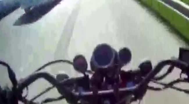 Şile Yolunda bir motosiklet sürücüsü yolda hızla ilerliyordu. Motosikletli şahıs emniyet şeridine girdiği sırada başka bir araç aniden önüne kırdı. Motosiklet sürücüsü frene bassa da araca çarpmaktan kurtulamadı. Araca çarpan motosiklet sürücüsü motordan fırlayarak yola düştü. Kazada ölen ya da yaralanan olmazken araçlarda maddi hasar meydana geldi. Kaza anı motosikletlinin kas kamerasına saniye saniye yansıdı.