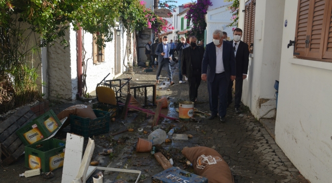 Seferihisar Sığacık’da incelemelerde bulunan İESOB Başkanı Zekeriya Mutlu, ‘Bornova ve Bayraklı’da 4, Seferihisar’da 3 ekibimiz çalışıyor. Bu bir afet. Allah daha beterinden korusun. Esnaf sanatkarlara mali anlamda en büyük destekleri veren esnaf kefalet kooperatifi başkanı ve Halkbank yöneticileri ile afet bölgesini gezdik, geçmiş olsun dileklerimizi ilettik. Amacımız mağdur durumda kalan üyelerimizi tespit ederek, yetkililere sunmak, ileride afet yardımı, vergi kolaylığı, kredi imkanı gibi olanaklar doğarsa yararlanmalarını sağlamak. Bir nebze olsun yaralarına merhem olmak’ dedi.