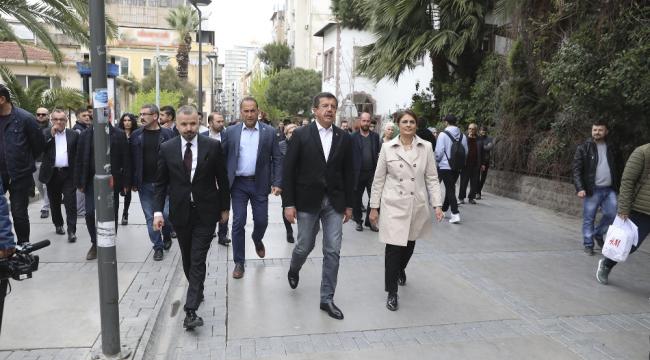 Cumhur İttifakı AK Parti İzmir Büyükşehir Belediye Başkan adayı Nihat Zeybekci, tarihi çarşının Kestanepazarı, Şadırvanaltı ve Hisarönü bölümlerinde esnafı ziyaret etti, gösterilen yoğun ilgiden bölgeyi 4 saatte geçebildi. Esnaf tarafından ilgiyle karşılanan Zeybekci, "Bu sene olacak inşallah, sizinle birlikteyiz", "Hakikaten yeter İzmir'i kurtarın artık", "İzmir'in size ihtiyacı var inşallah bu kez kazanacaksınız", "Kaldırım taşları yapıldı, yağmurda kalkıyor yaşlı insanlar yürüyemiyor. Buraların düzelmesi gerekiyor", "İnşallah kazanacaksınız", "Kemeraltı, altyapı olarak, ulaşım olarak sizden büyük hizmet bekliyor. Seçim sonrası da sizi burada görmek istiyoruz", "İzmir'e çözüm gerekiyor" diyerek destek ve beklentilerini iletti.