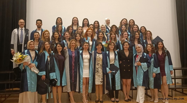 EGEOLAY/ Ege Üniversitesi (EÜ) Sağlık Bilimleri Fakültesinde 2022-2023 eğitim öğretim döneminde öğrenimlerini tamamlayan 167 ebe ve diyetisyen düzenlenen törenle sağlık sektörüne uğurlandı. Ege Üniversitesi Prof. Dr. Yusuf Vardar MÖTBE Kültür Merkezinde yapılan törene; EÜ Tıp Fakültesi Dekanı ve Rektör Yardımcısı Cemil Gürgün, EÜ İletişim Fakültesi Dekanı Prof. Dr. Bilgehan Gültekin, EÜ Sağlık Bilimleri Fakültesi Dekanı Prof. Dr. Prof. Dr. Esin Çeber Turfan, Dekan Yardımcıları Prof. Dr. Rabia Ekti Genç, Prof. Dr. Birsen Karaca Saydam, akademisyenler, öğrenciler ve aileleri katıldı.