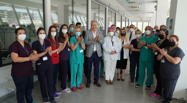 EGEOLAY/Yaklaşık iki yıldır tüm dünyayı etkisi altına alan Covid-19 pandemisi, yoğun aşılanmanın da etkisiyle bitiş sürecine girdi. Pandeminin başından bu yana gerek İzmir’e gerekse bölgeye önemli sağlık hizmetleri sunan Ege Üniversitesi Tıp Fakültesi (EÜTF) Hastanesi Covid Yoğun Bakımı, son hastanın da servise alınmasının ardından kapatıldı. Rektör Prof. Dr. Necdet Budak, yoğun bakım servisini ziyaret ederek sorumlu Prof. Dr. İlkin Çankayalı’dan bilgi aldı.