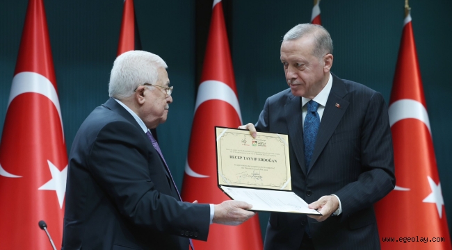 EGEOLAY/Cumhurbaşkanı Erdoğan, Filistin Devlet Başkanı Abbas ile gerçekleştirdiği ortak basın toplantısında yaptığı açıklamada, “Türkiye olarak Filistin halkı ile dayanışmamızı, Filistin davasına desteğimizi en güçlü şekilde sürdürüyoruz, sürdüreceğiz” dedi.