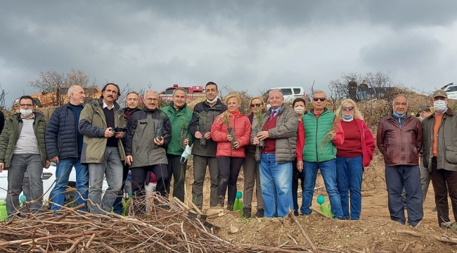 EGEOLAY/İzmir Gazeteciler Cemiyeti, yeni yıl armağanı olarak üyeleri adına bin fidanı toprakla buluşturdu. Geçtiğimiz aylarda Karşıyaka Seyirtepe’de yanan ormanlık alanda gerçekleştirilen fidan dikim törenine İGC üyeleri ve Orman İşletme Müdürlüğü yetkilileri katıldı. Orman yangınları ve fidan dikimi hakkında gazeteciler bilgilendirildikten sonra, fidan dikimi gerçekleşti. İzmir Orman İşletme Müdürü Ersen Çetin, yanan 2,7 hektarlık alana toplamda 3 bin 350 adet fidan dikileceğini belirterek, “Bu saha içinde yaklaşık olarak 2 bin 150 adet kızılçam, 500 tane fıstık çamı, 700 adet de karaselvi olmak üzere toplamda 3350 adet fidan toprakla buluşturulmuş olacak” dedi.