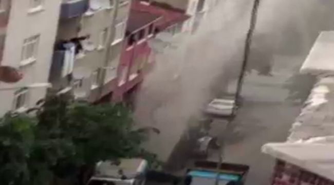 Gaziosmanpaşa'da boru patladı, su metrelerce yükseğe fışkırdı