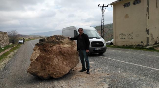 Batman'ın Gercüş ilçesinde yağışların etkisi nedeniyle yerlerinden oynayan dev kaya parçaları yola düştü.
